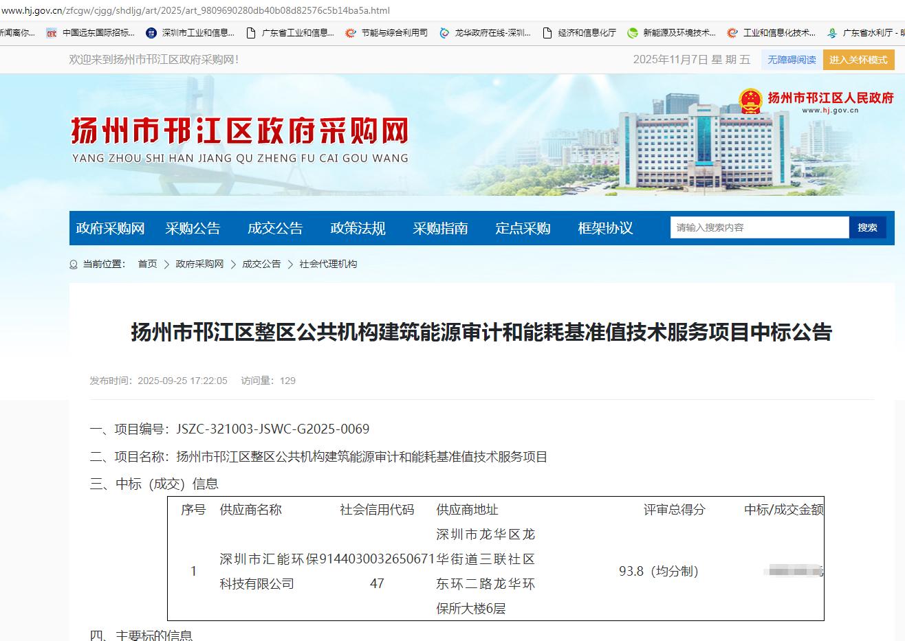 - 喜报:汇能环保中标扬州市邗江区2025年整区公共机构建筑能源审计和能耗基准值核定技术服务项目
